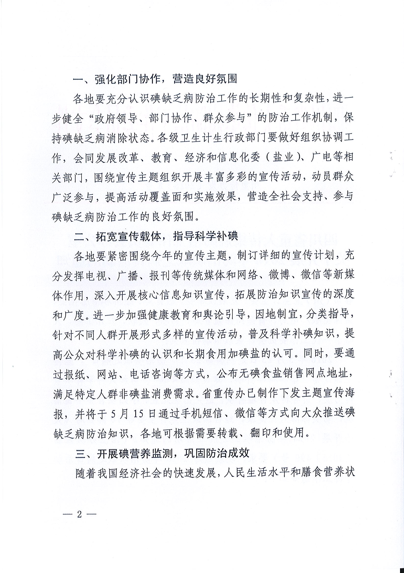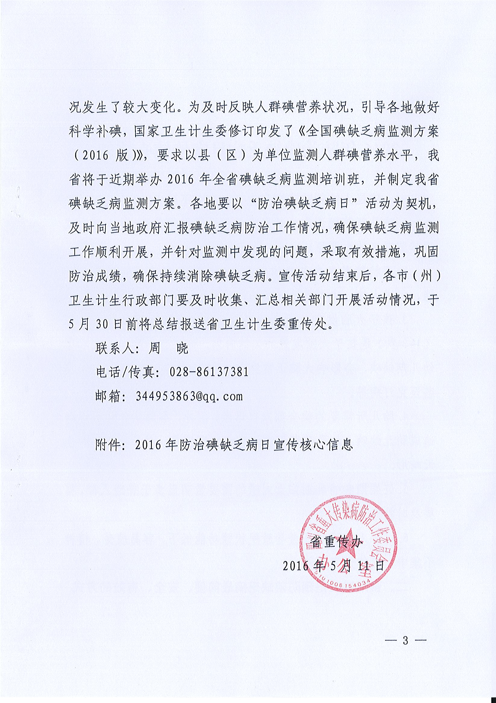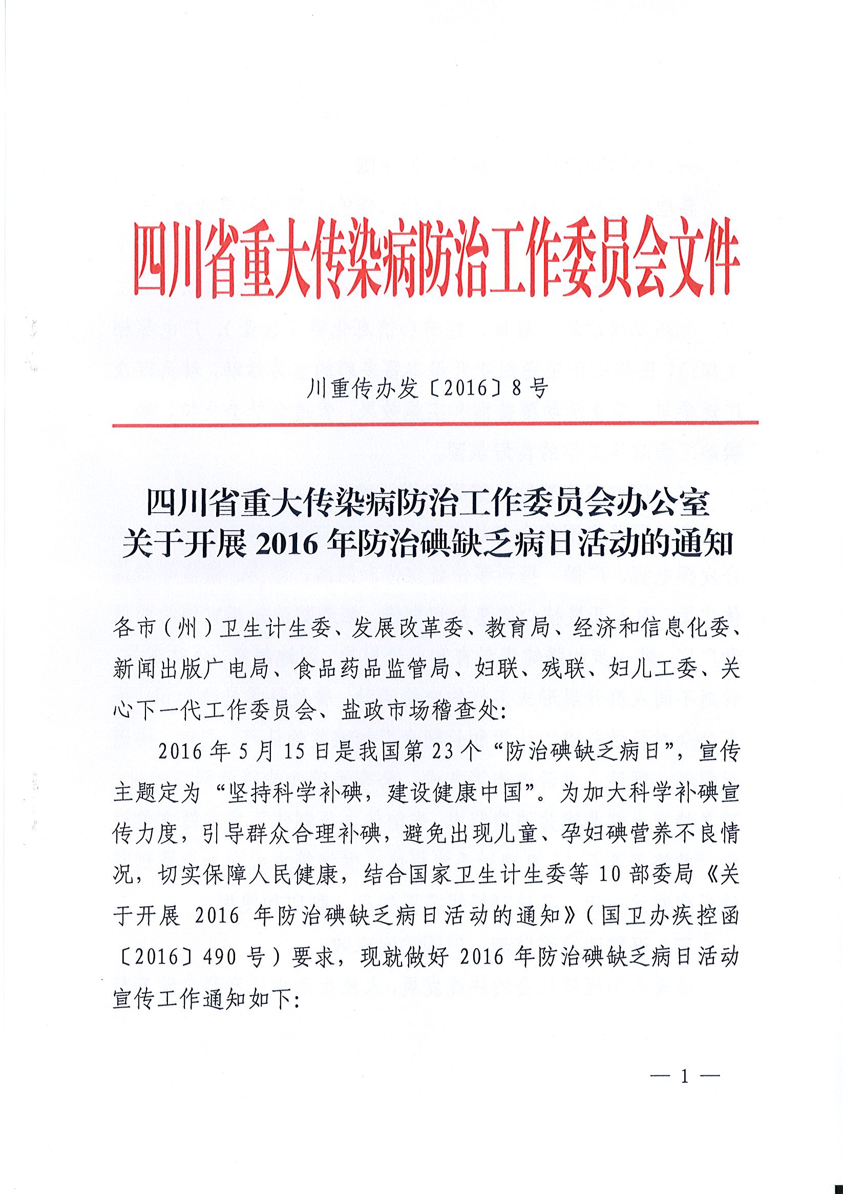四川省重大傳染病防治委員會辦公室關于開展2016年防治碘缺乏病日活動的通知