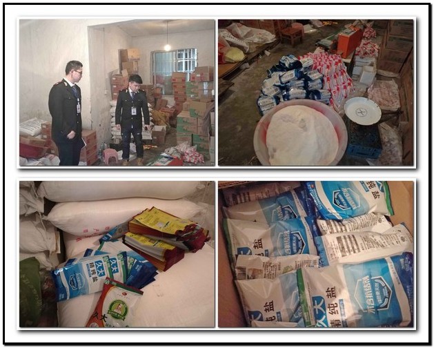 鹽改在即,私鹽販子和食鹽不法商販的活動也日益猖獗,成都食鹽市場動蕩加劇。12月19日,成都市鹽政處接到舉報,鹽政人員立即前往安靖鎮,現場查處了一假冒食鹽窩點:查獲假冒鹽合計4.667噸,其中原料鹽2噸,已分裝好的假冒久大小袋鹽2.667噸(均不含碘)。具體為:自流井牌味精鹽50公斤裝34件,川晶牌未加碘食鹽50公斤裝6件,已分裝好的假冒久大精純鹽350克87件,假冒久大綠色食用鹽350克40件。假冒空紙箱130個,假冒久大綠色食用鹽口袋8000張,假冒久大精純鹽口袋12000張。半自動封口機一台,手動封口機一台,并現場擋獲正在生産假鹽的一名工人。此案在進一步調查中。