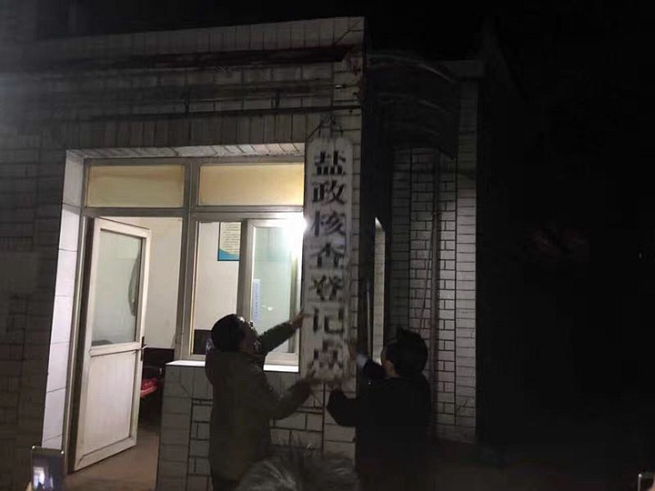 元旦零時,省鹽務局鹽政法規處顧凱處長與自貢市鹽政稽查處何克拉副處長共同卸牌