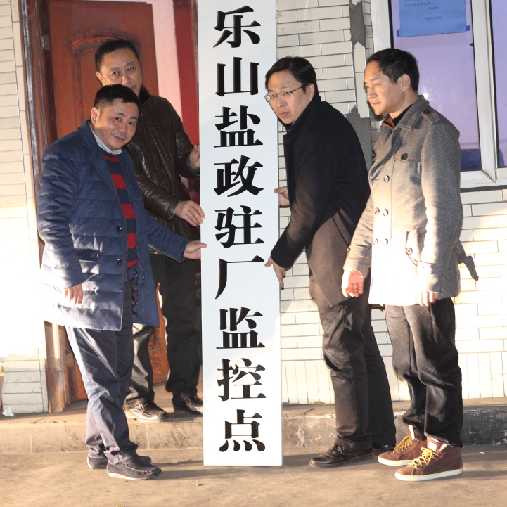 元旦零時,省鹽務局鹽政法規處何毅副處長與樂山市鹽政稽查處郭波副處長、鹽政科許躍政科長、井研鹽政所劉偉所長等共同卸牌