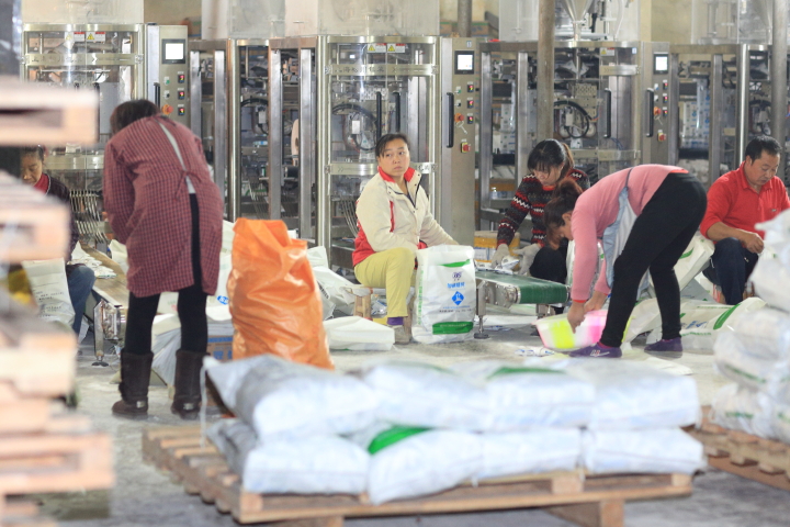 駐廠點的食鹽定點生産企業徹夜光明24小時連續運轉加工小包裝食用鹽,備貨運輸全國各地食鹽市場