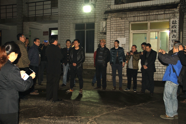 省鹽務局鹽政法規處鐘福俊調研員、何毅副處長與與樂山市鹽政稽查處郭波副處長等與駐聯峰大同、順鹽鹽品、聯峰井研點最後一班崗的執法人員彭江川、劉松壽(鍵為)、陳淩骥(蓬溪所)、戴鴻明、郭榮光(五通所)、潘先明(遂甯)、馬利平(井研)等一起見證駐廠檢查的停止