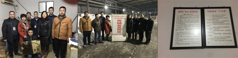 2016年12月31日晚,按照省鹽務局的統一部署,泸州市稽查處副處長李蓮華、鹽政科王穎科長、鹽政科王瑜,長甯鹽政所所長袁澤華、江安鹽政所所長鄧礎、泸州鹽政所所長牟勇等分别到宜賓長甯豐源鹽業、江安海豐和銳化工廠、泸鑫福化工廠、泸州北方化工廠等駐廠監控點,巡查看望堅守在駐廠工作崗位上的鹽政執法人員,和大家一起堅守跨年駐廠監控工作。