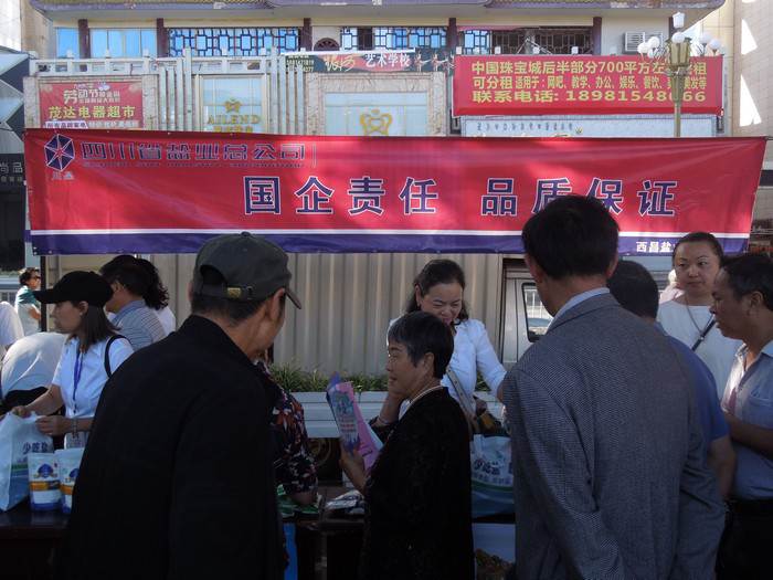 活動現場涼山鹽業職工通過宣傳展闆、發放宣傳資料、結合經營的各類小包裝食鹽進行了詳細的産品介紹,并開展現場促銷活動,加深了廣大群衆對鹽業公司的企業形象和“川晶”品牌的認知。同時耐心講解了碘缺乏病相關知識,充分體現了國有企業的社會責任。