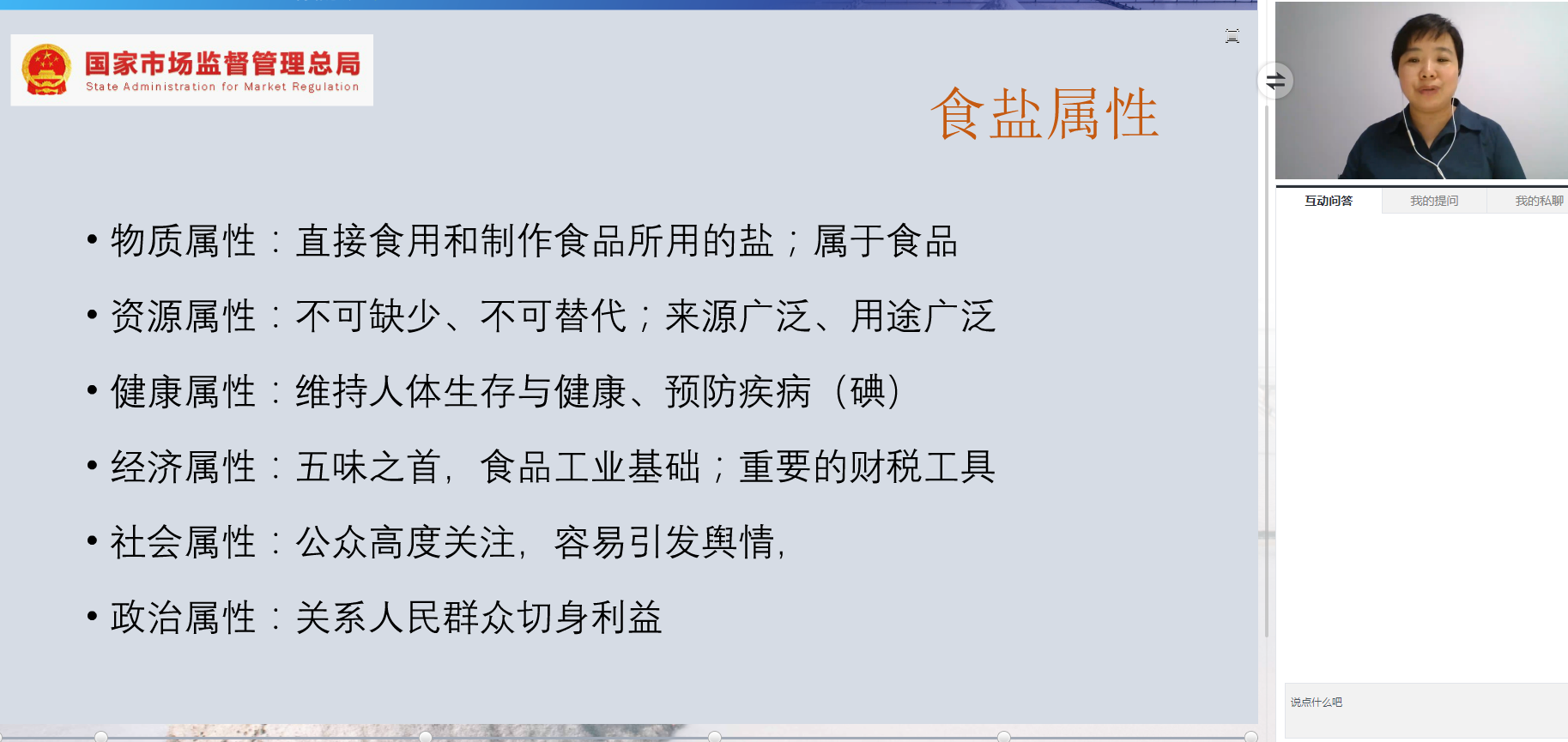 作為首位演講嘉賓,張士俠演講的題目是:食鹽生産質量安全監管。她結合鹽業體制改革的時代背景,圍繞食鹽監管介紹了相關法律、法規、部門規章和适用标準,就《刑法》《食品安全法》《食鹽質量安全監督管理辦法》中适用食鹽生産的内容進行了解讀,強調2020年2月19日國家市場監督管理總局發布《關于對食鹽定點生産企業核發食品生産許可證的通知》後,各食鹽企業務必按要求開展取證工作。她通報了當前取證工作進展情況,總結了有關食品安全風險識别與防控的幾大突出問題,要求鹽業企業盡快适應新的市場監管體制和模式,建立預防食品安全風險的控制措施,不斷強化及時、有效地化解、解決實際生産和銷售過程中出現的各類風險的能力。