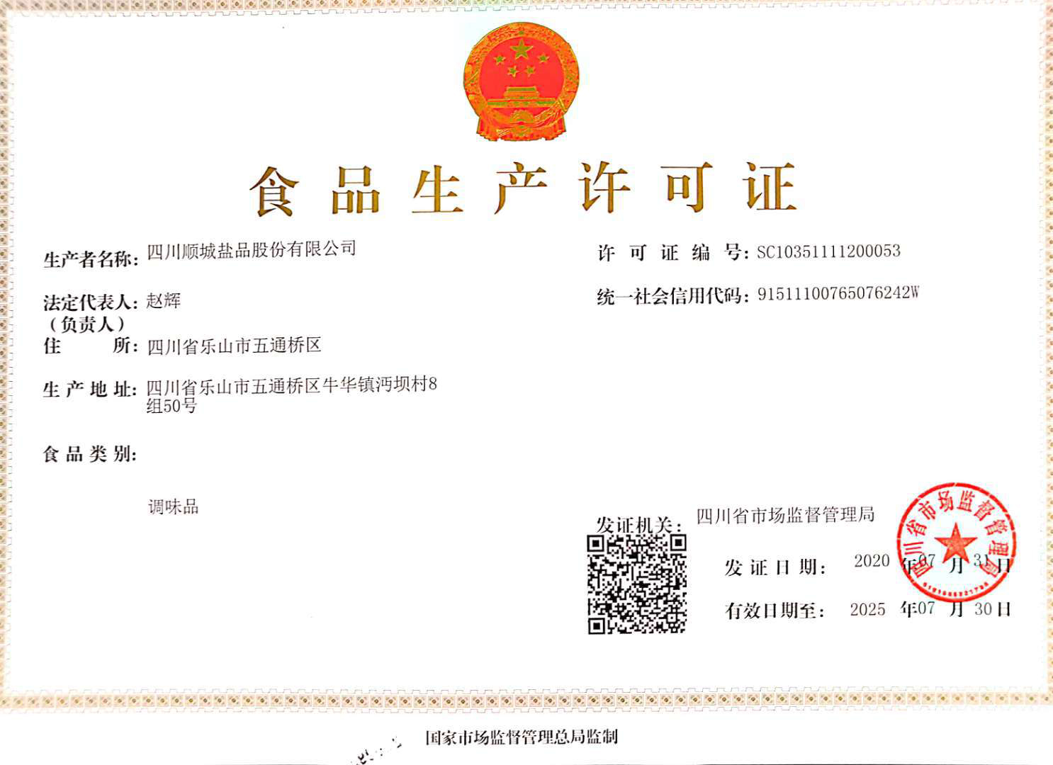 (提示:按《食品生産許可管理辦法》對公司或其生産地子公司一企一證的申領要求,取得食品生産許可證10家企業,包括久大制鹽、久大品種鹽、馳宇鹽品、豐源鹽業、順城鹽品、聯峰鍵為、聯峰大同、久大蓬萊、南充順城、天渠鹽化)
