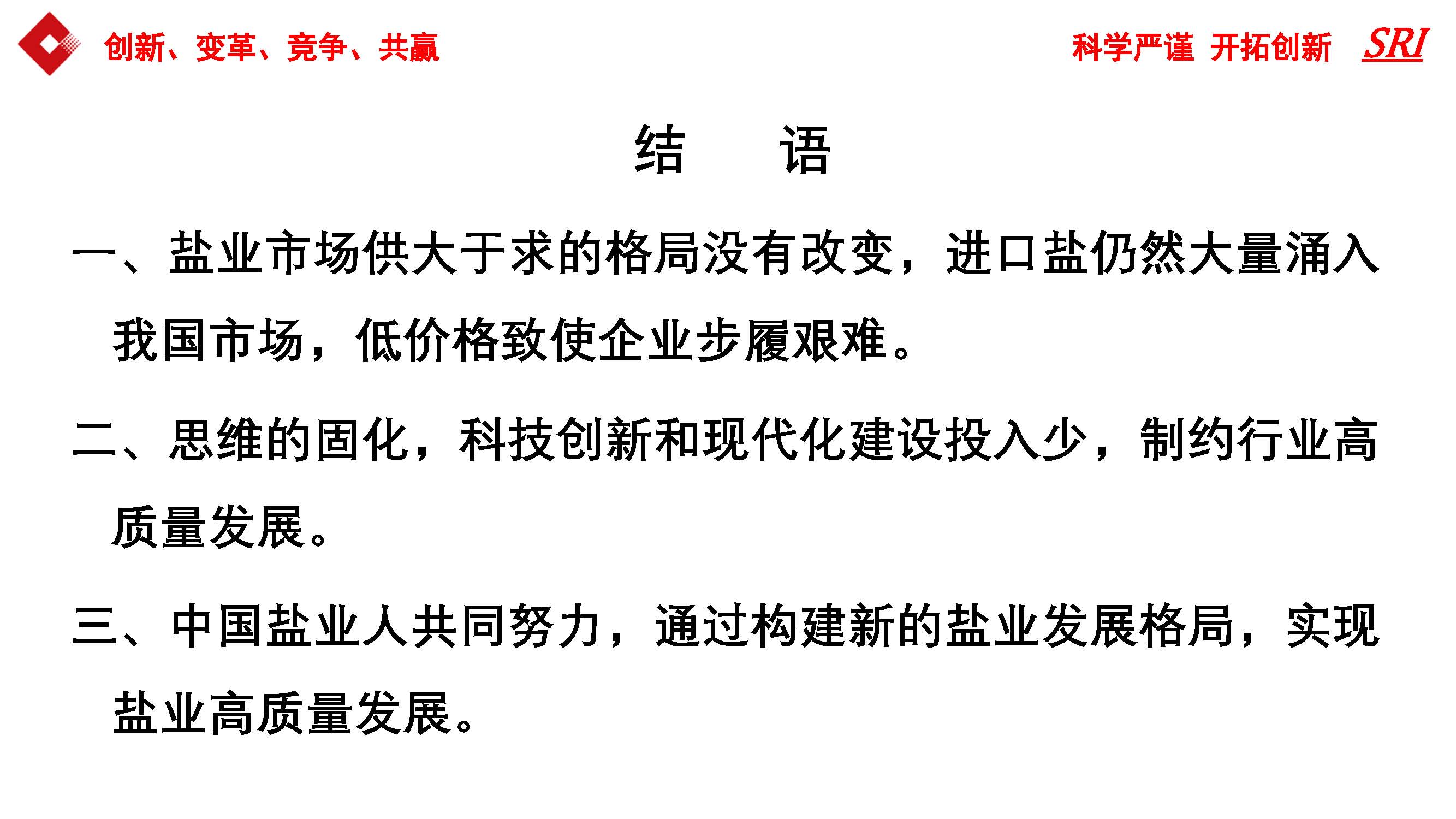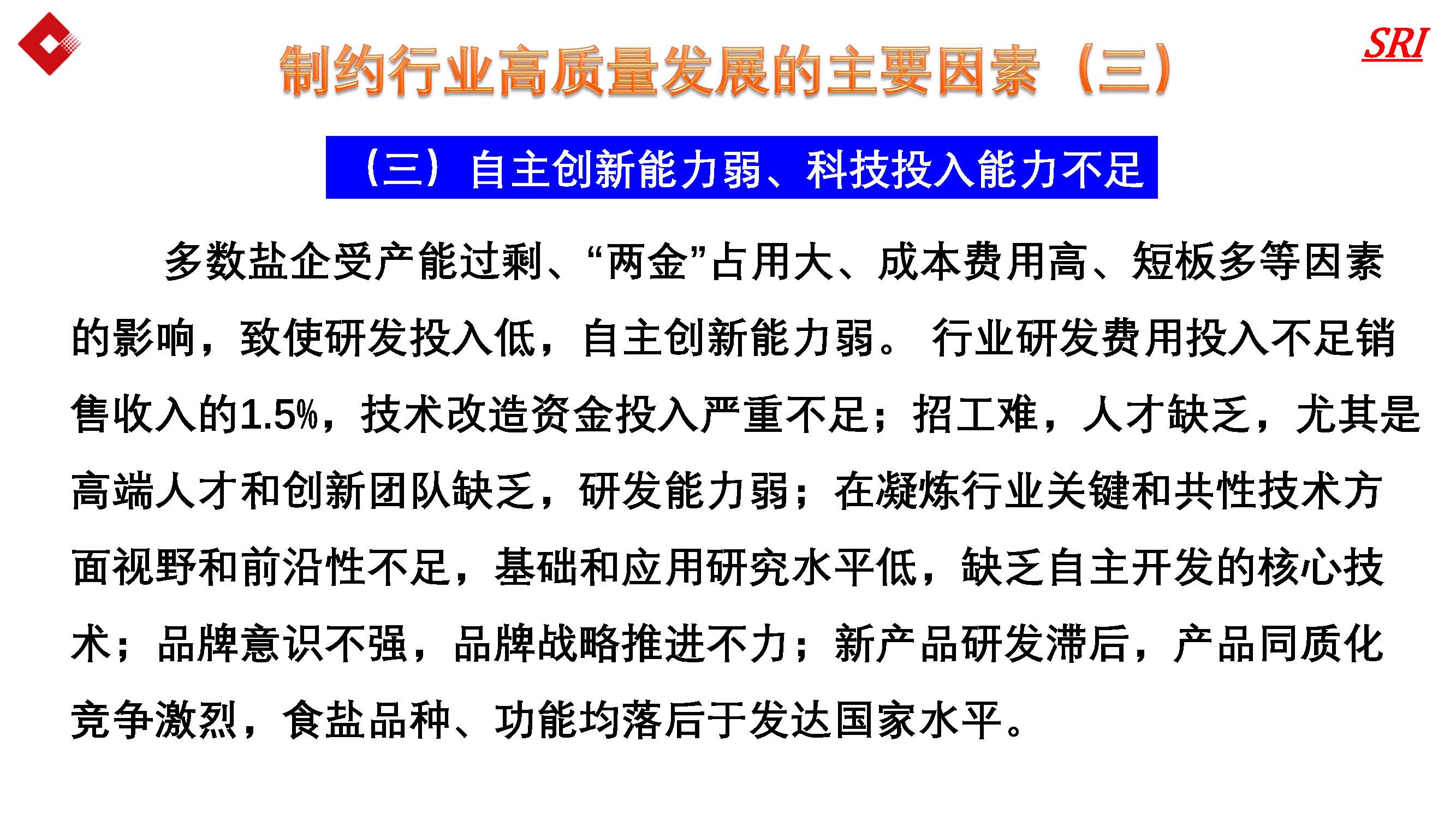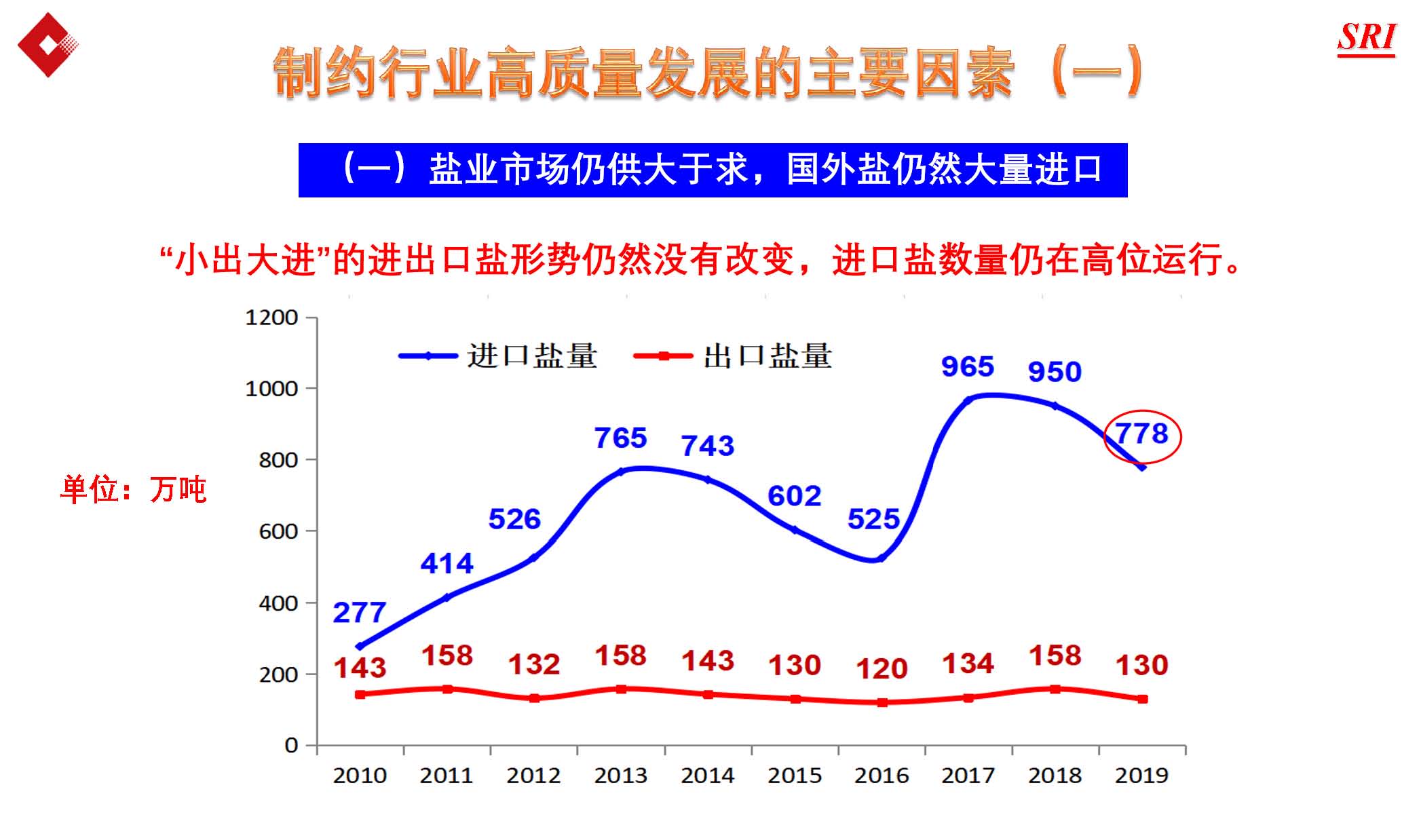 朱國梁院長指出,目前我國鹽業高質量發展受到制約,主要一方面是由于國内鹽業市場受到國外價廉物優的進口鹽沖擊,其次國内技改優化投入不足,生産自動化程度和勞動生産率低,而且自主創新能力相對薄弱、科技投入能力不足,缺乏自主開發的核心技術,新産品研發滞後,産品同質化競争激烈,食鹽品種、功能均落後于發達國家水平。