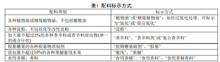 直接使用的食品添加劑應在食品添加劑項中标注。營養強化劑、食用香精香料、膠基糖果中基礎劑物質可在配料表的食品添加劑項外标注。非直接使用的食品添加劑不在食品添加劑項中标注。食品添加劑項在配料表中的标注順序由需納入該項的各種食品添加劑的總重量決定。